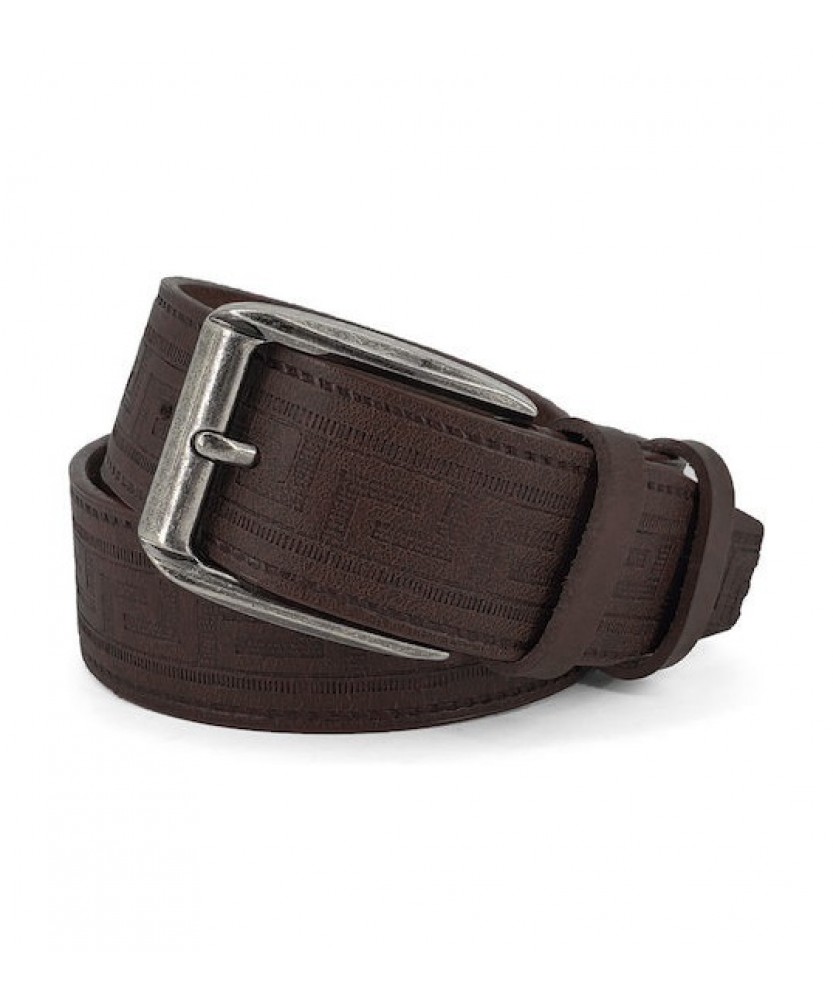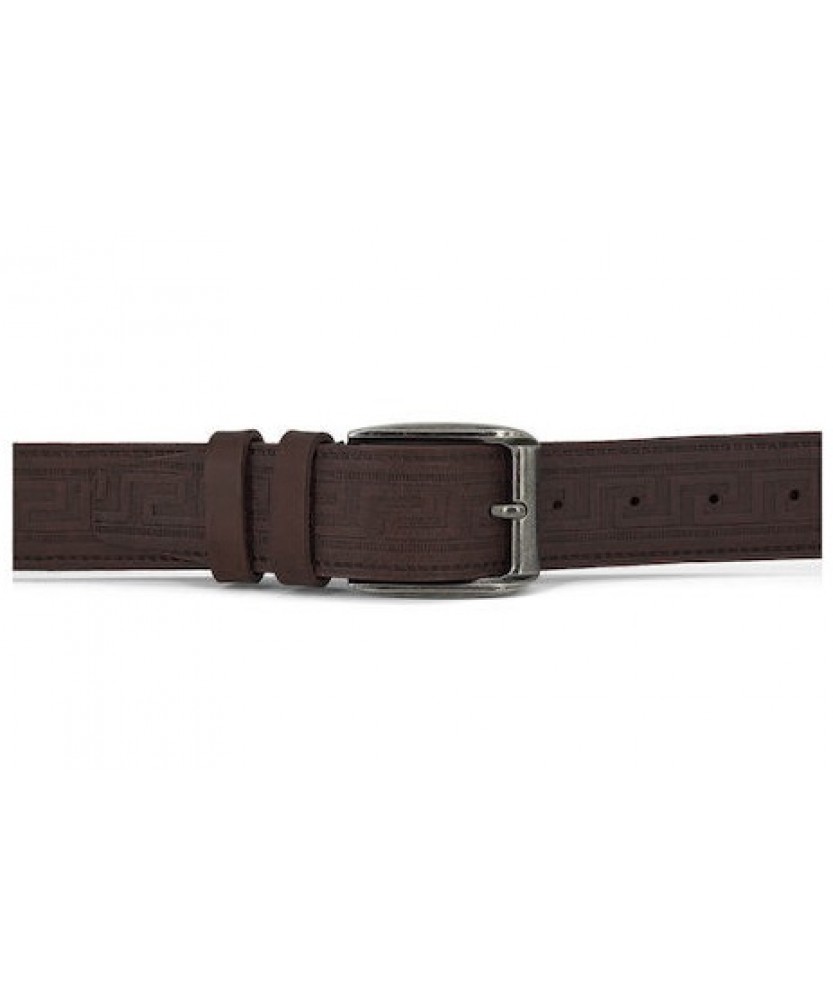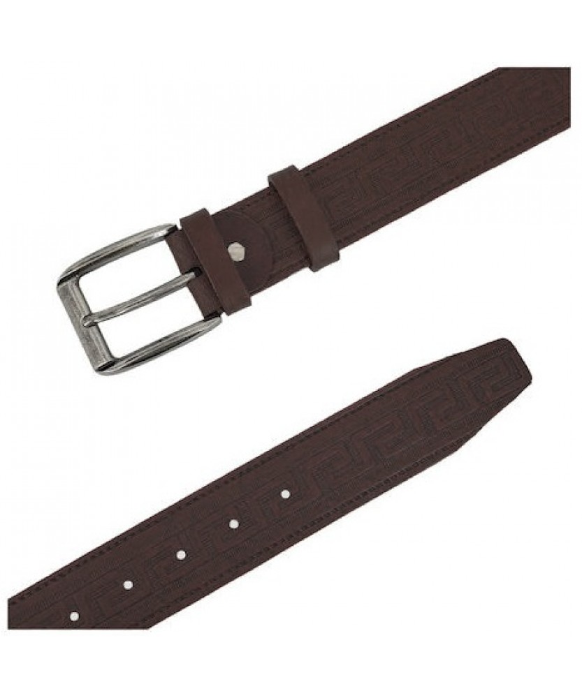 Δερμάτινη Ανδρική Ζώνη KOUROS με Πυρογραφία Μαίανδρος NS1017 BROWN