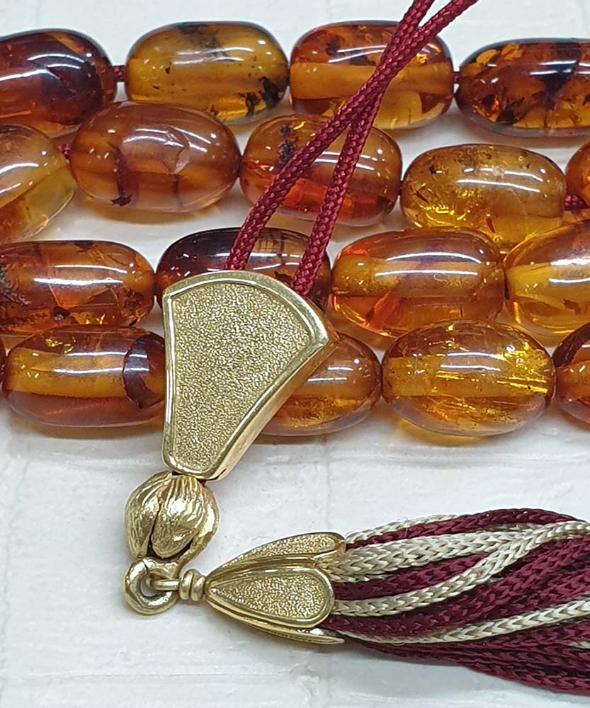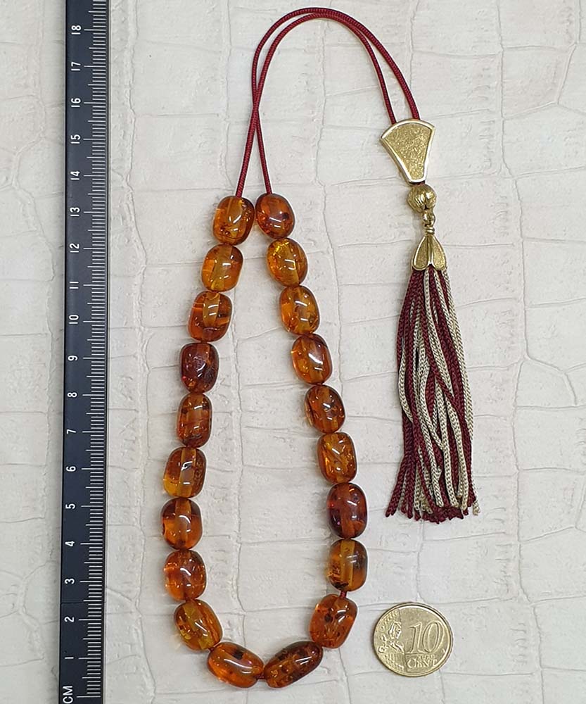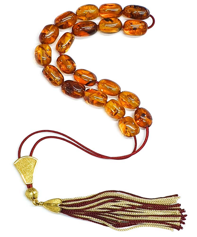 - Κομπολόι από Κεχριμπάρι με χρυσό θυρεό 24K