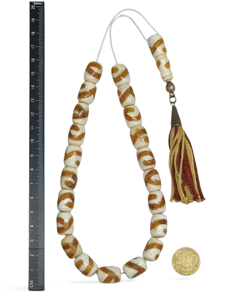 • Κομπολόι από Κόκκαλο Καμήλας και Πρεσαριστό Κεχριμπάρι με 21 χάντρες.