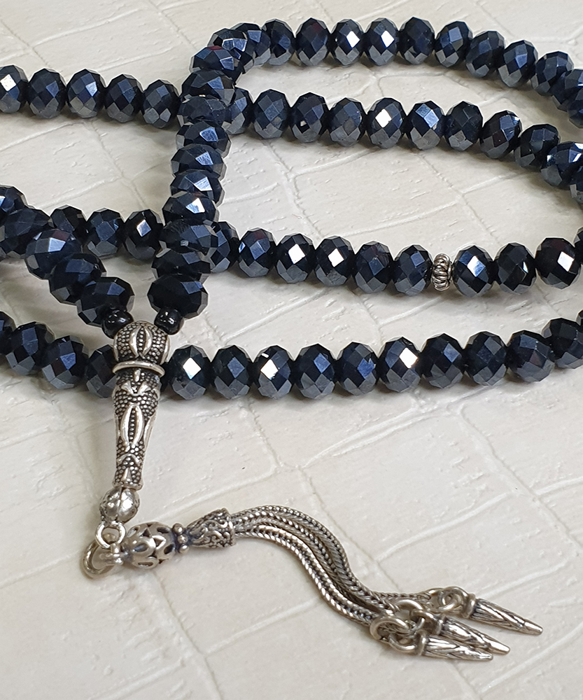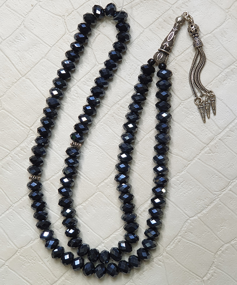 Τεσπίχ (Μουσουλμανικό Προσευχητάρι) από κρύσταλλο και ασήμι με 99 χάντρες TES10045